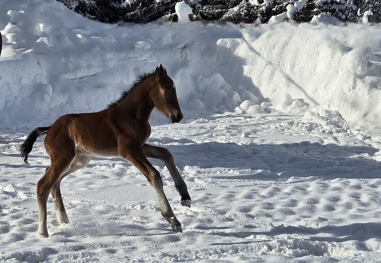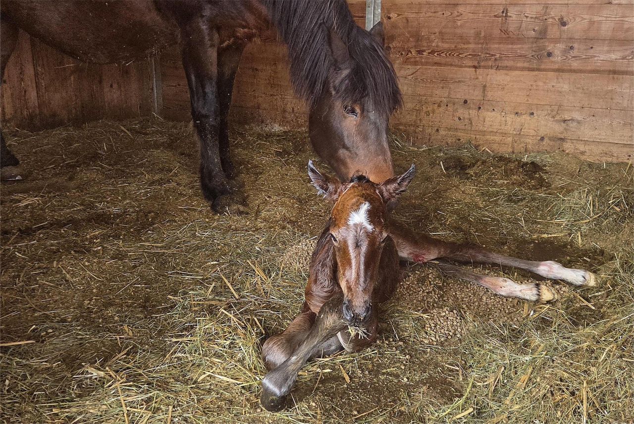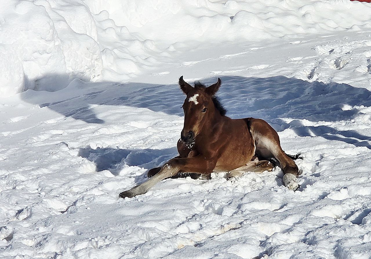 Juhuiii! Ella Du bist einfach nur wunderbar! Du hast am 21.2 am Morgen Dein 17. Fohlen im Schneegestöber gesund zur Welt gebracht und ich durfte voll dabei sein! Ein wunderschönes Haloa Stütchen mit Schneestern auf der Stirn.